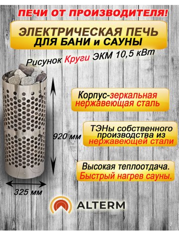 Электрокаменка ЭКМ-10,5 (нерж., круги)