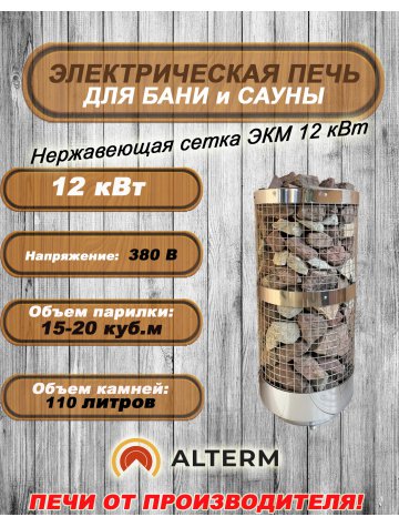 Электрокаменка ЭКМ-12 нержавеющая сетка