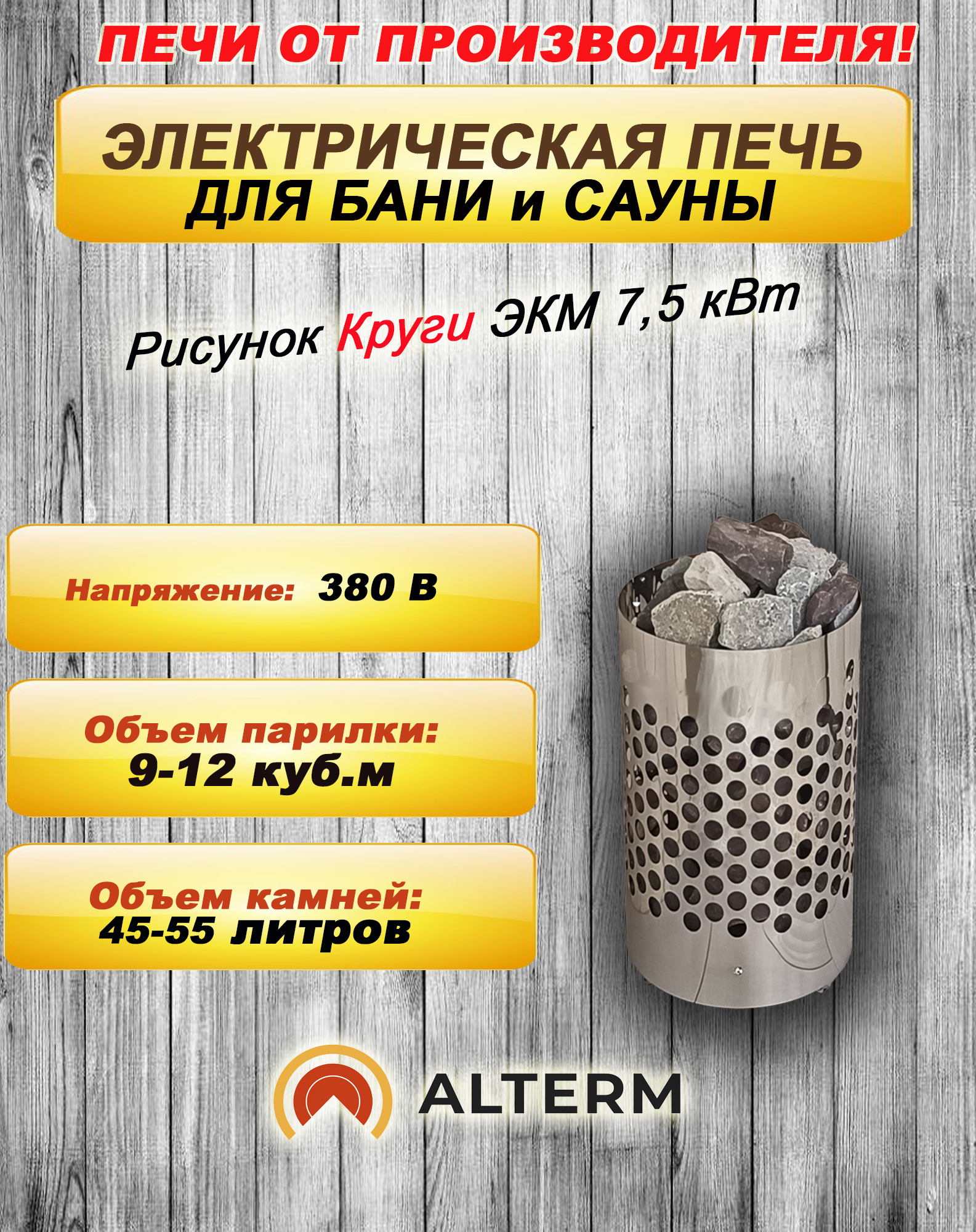 - корпус электрокаменки выполнен из НАСТОЯЩЕЙ КОРРОЗИОННОСТОЙКОЙ НЕРЖАВЕЮЩЕЙ СТАЛИ марки AISI 430. Длительное время не поддается коррозии и долго будет сохранять привлекательный вид, без налетов ржавчины.