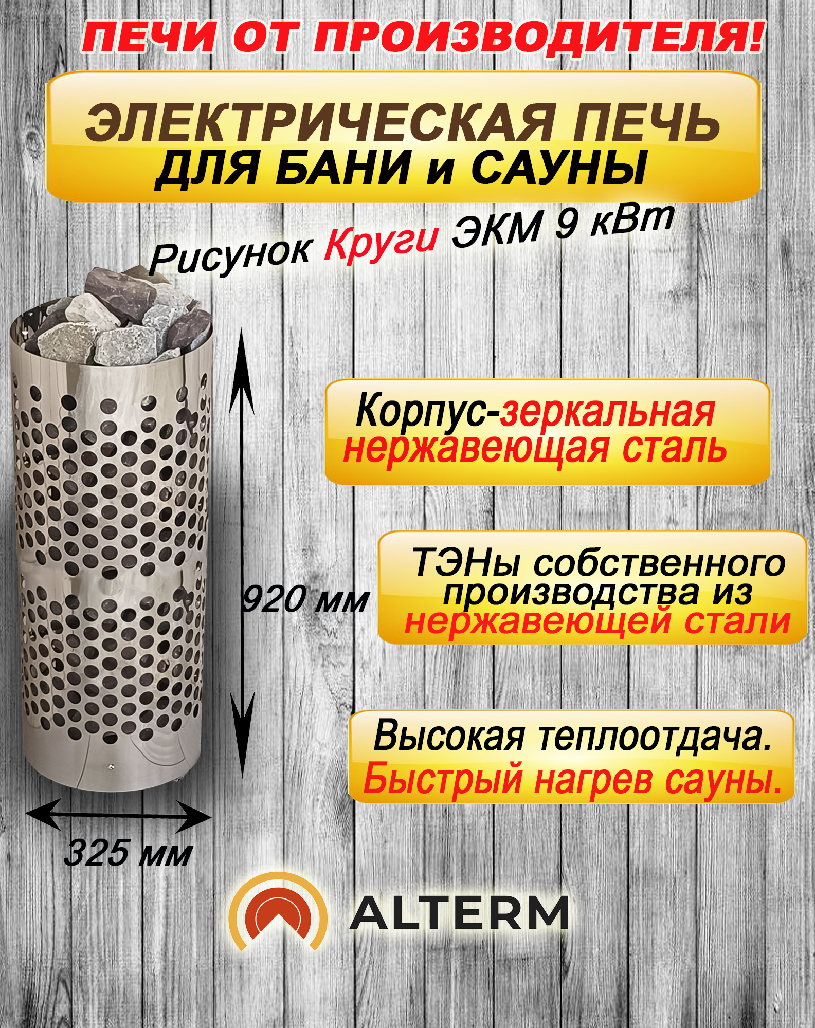 НОВИНКА!!! Привлекательная, простая в использовании и надежная Электрокаменка, выполненная в оригинальном корпусе из ЗЕРКАЛЬНОЙ нержавеющей стали. Наполнит жарким паром как домашнюю сауну, так и парную в коммерческом банном комплексе. Обладает идеальным соотношением цена/качество!