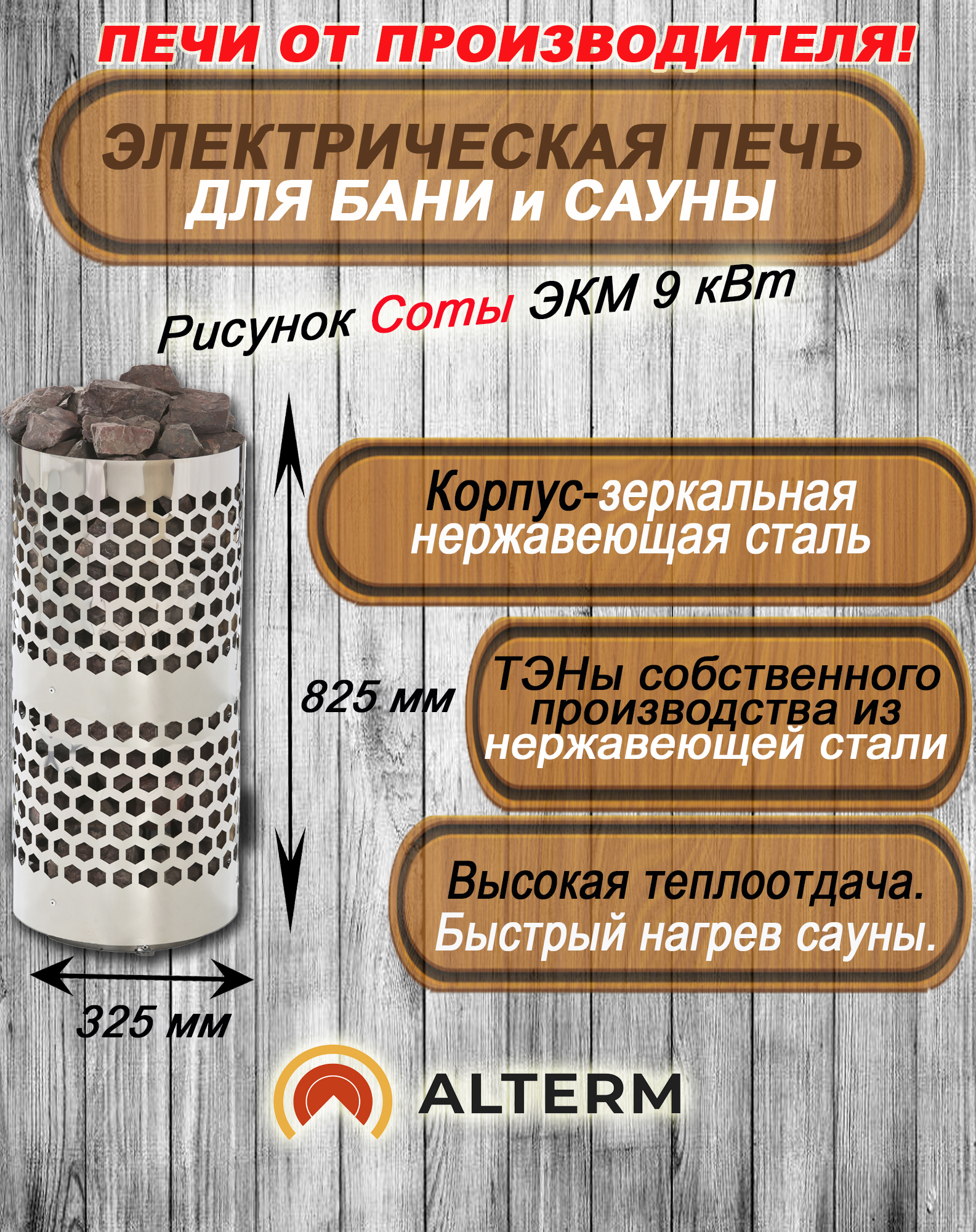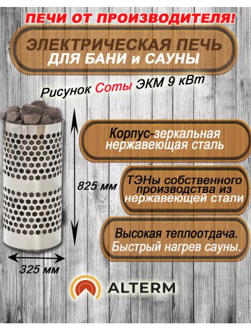 - корпус электрокаменки выполнен из НАСТОЯЩЕЙ КОРРОЗИОННОСТОЙКОЙ НЕРЖАВЕЮЩЕЙ СТАЛИ. Длительное время не поддается коррозии и долго будет сохранять привлекательный вид без налетов ржавчины.